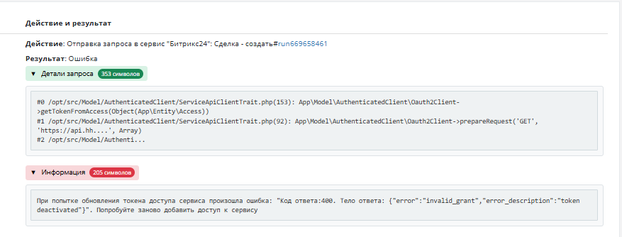Раньше при возникновении ошибок в интеграции в журнале указывалась только сама ошибка без указания, на каком этапе или в каком инструменте она произошла. Из-за этого было сложно понять, где именно произошёл сбой.
