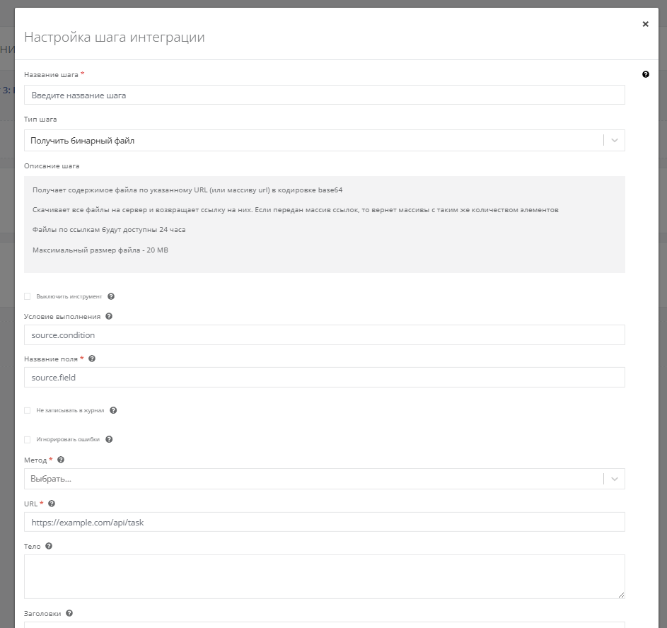 Ранее пользователи Пинкит могли сталкиваться с проблемой скачивания сложных файлов из системы Bitrix24 через инструмент «Скачать файл» на Шаге 2.