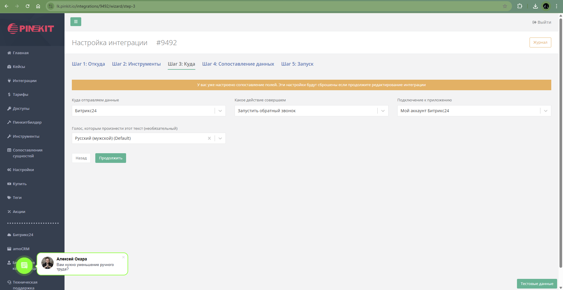 На Шаге 3 настройки интеграции с Битрикс24 (куда) добавили возможность запускать автоматический обратный звонок