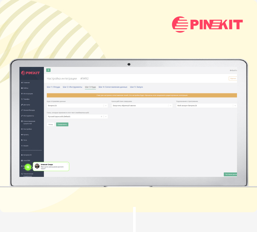 Подберите свой кейс публичной интеграции без регистрации здесь: https://lk.pinkit.io/cases.